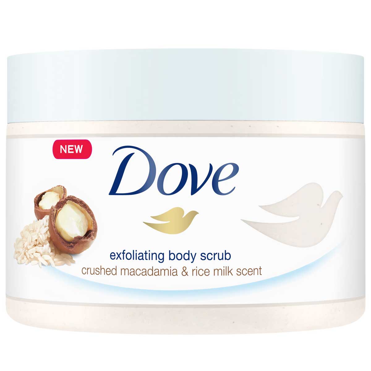 اسکراب بدن داو حاوی عصاره شیر برنج و ماکادمیا